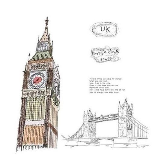 Amazon イギリス 時計台とロンドン橋 手書き風 ウォールステッカー ウォールステッカー オンライン通販